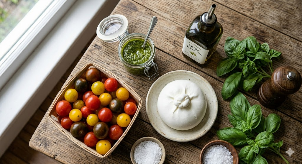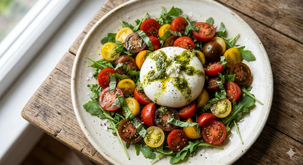 La receta de burrata perfecta no requiere fuego, solo paciencia y buenos ingredientes. Es el plato ideal para demostrar que en la sencillez reside la elegancia gastronómica. Ya sea para una cena romántica o un entrante con amigos, este plato nunca falla.