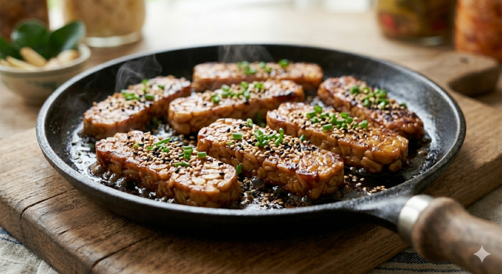 Aunque el proceso de cocinado elimina los microorganismos vivos, el tempe sigue siendo una fuente increíble de fibra prebiótica que alimenta a nuestra microbiota. Además, la fermentación reduce drásticamente las flatulencias que a veces producen otras legumbres.